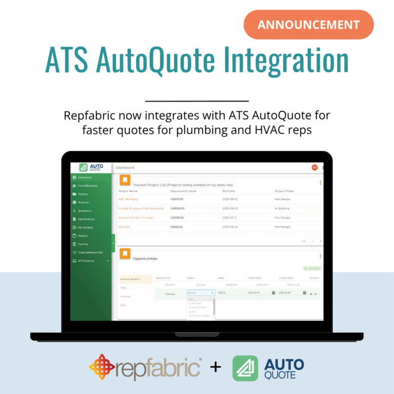 Repfabric now integrates with ATS Autoquote, giving plumbing and HVAC reps instant access to quotes and product data directly inside their CRM.