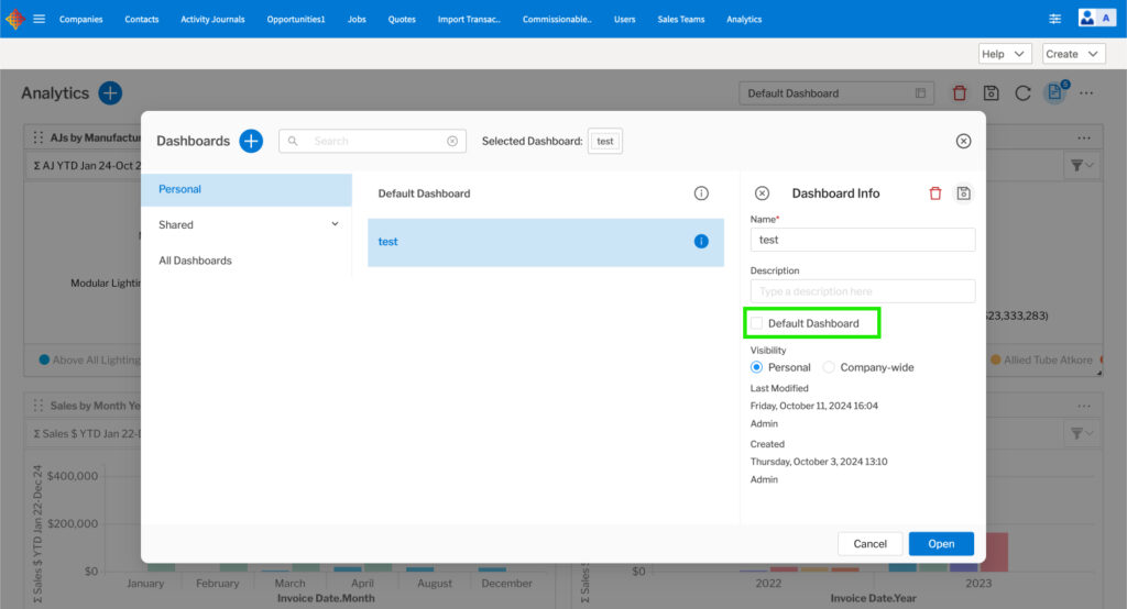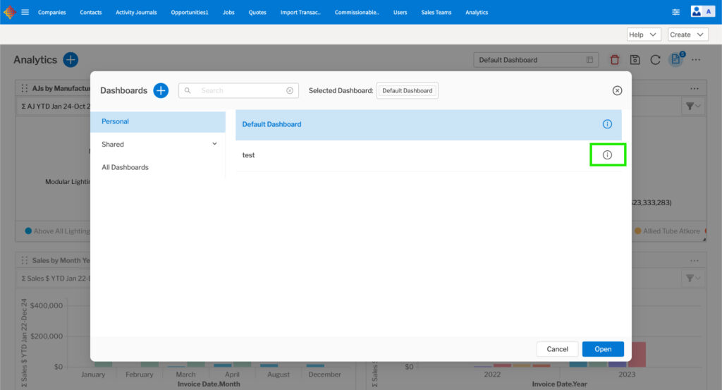 Do you want to load a particular Dashboard you have created automatically? Users can now mark a Dashboard they have developed as their Default Dashboard, making it the Dashboard that loads when opening the Analytics module.