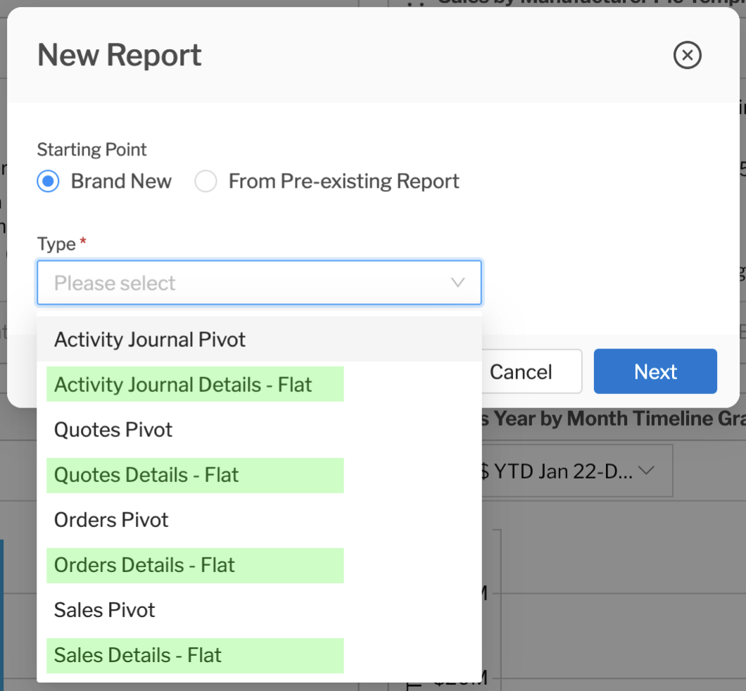 We have introduced a new set of Reports, denoted as Detail Flat Reports. We have created new Reports for AJs, Opportunities, Quotes, Orders, Sales, and Commissions.